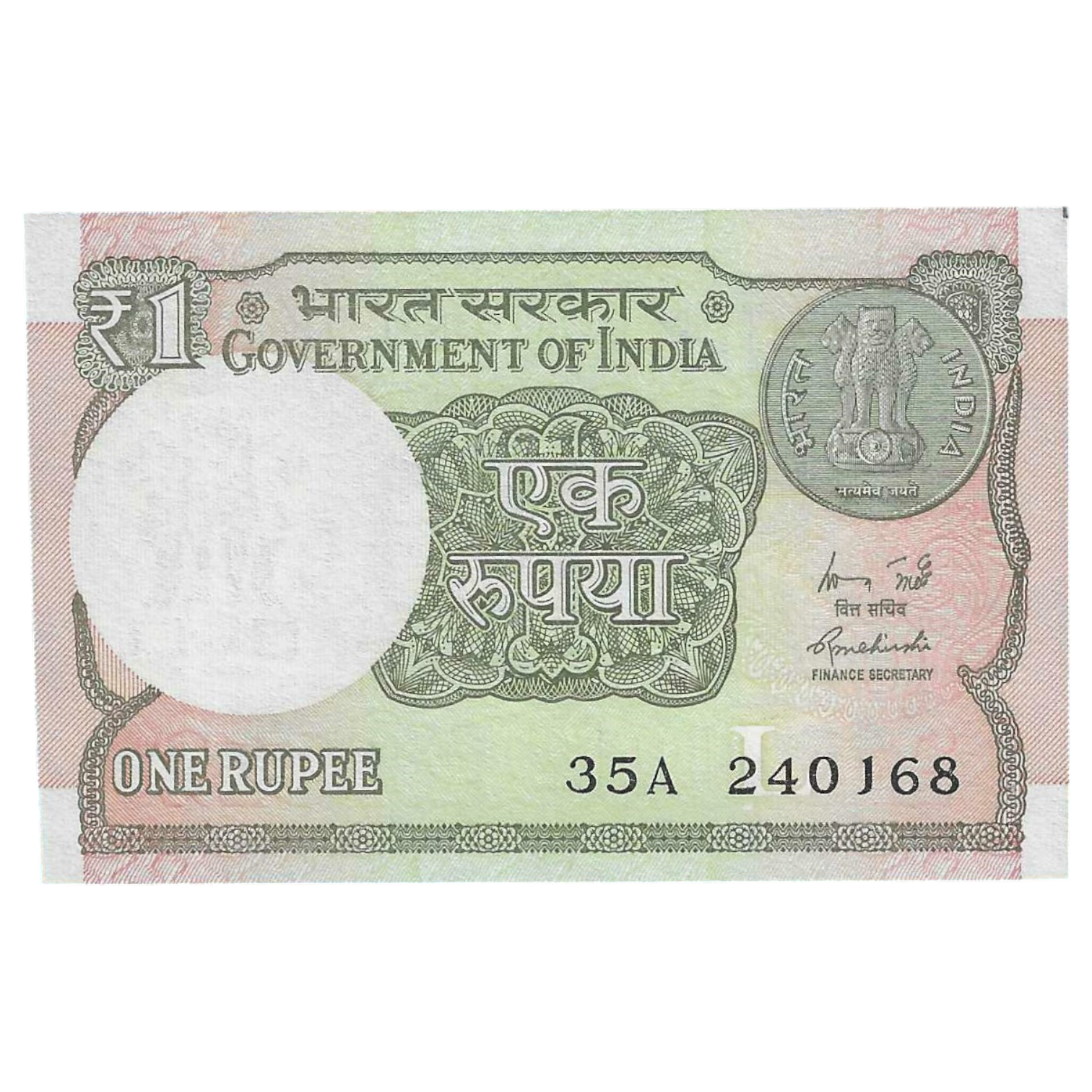 A-60 ~ 1 RUPEE NOTE ~ R MEHRISHI ~ 2015 ~ INSET “L” ~ PREFIX “A” ~ DATE : 24th JANUARY 68