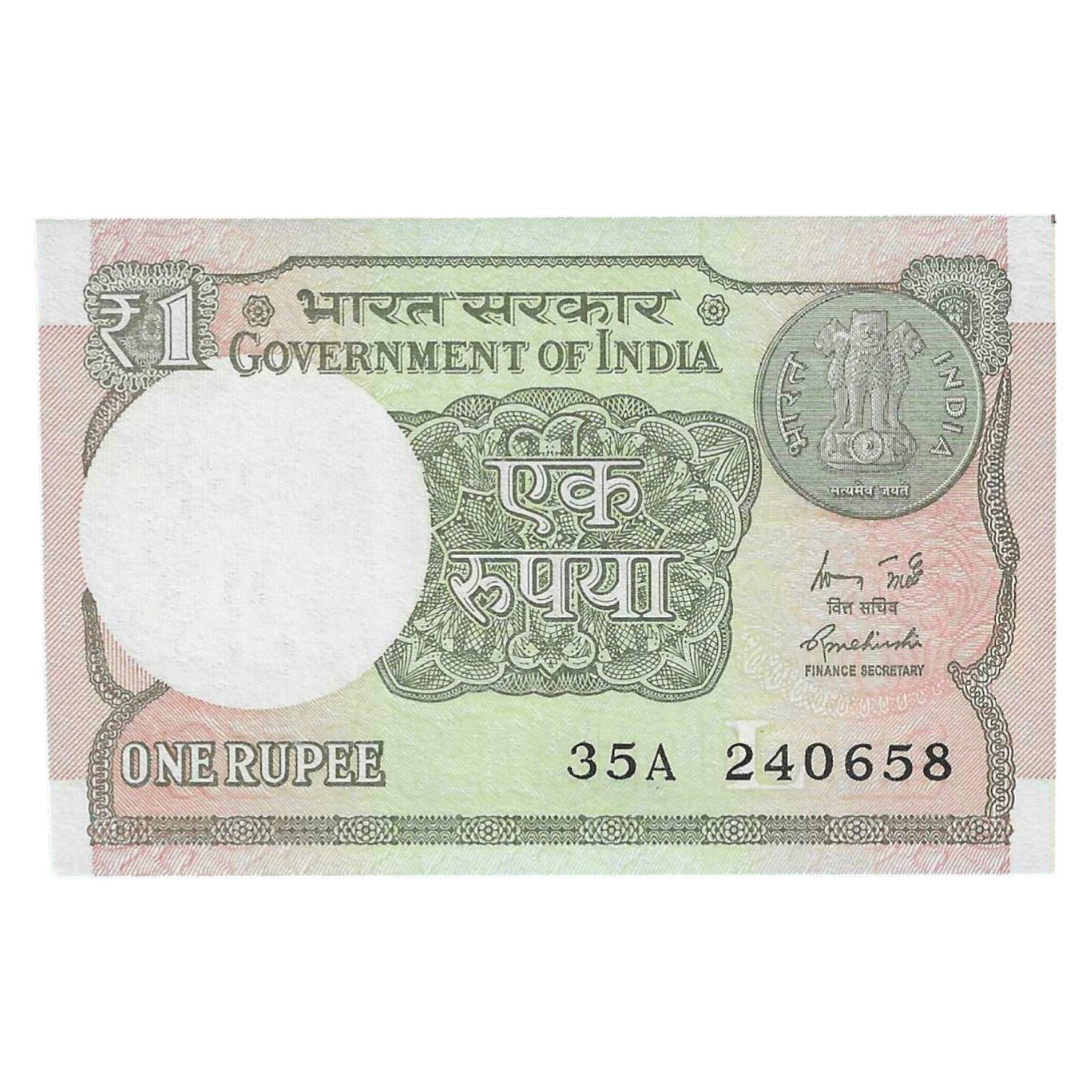 A-60 ~ 1 RUPEE NOTE ~ R MEHRISHI ~ 2015 ~ INSET “L” ~ PREFIX “A” ~ DATE : 24th JUNE 58