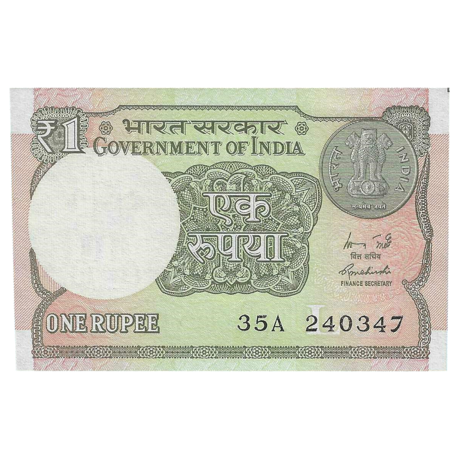 A-60 ~ 1 RUPEE NOTE ~ R MEHRISHI ~ 2015 ~ INSET “L” ~ PREFIX “A” ~ DATE : 24th MARCH 47