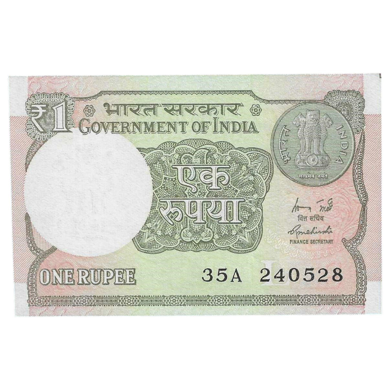 A-60 ~ 1 RUPEE NOTE ~ R MEHRISHI ~ 2015 ~ INSET “L” ~ PREFIX “A” ~ DATE : 24th MAY 28