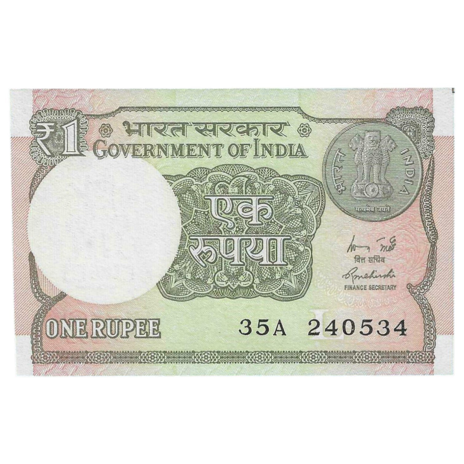 A-60 ~ 1 RUPEE NOTE ~ R MEHRISHI ~ 2015 ~ INSET “L” ~ PREFIX “A” ~ DATE : 24th MAY 34