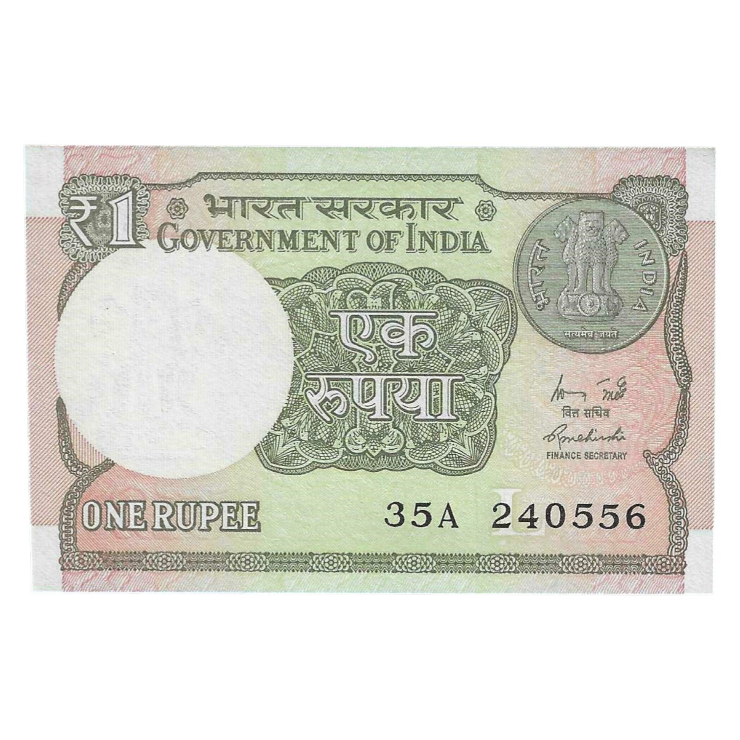 A-60 ~ 1 RUPEE NOTE ~ R MEHRISHI ~ 2015 ~ INSET “L” ~ PREFIX “A” ~ DATE : 24th MAY 56
