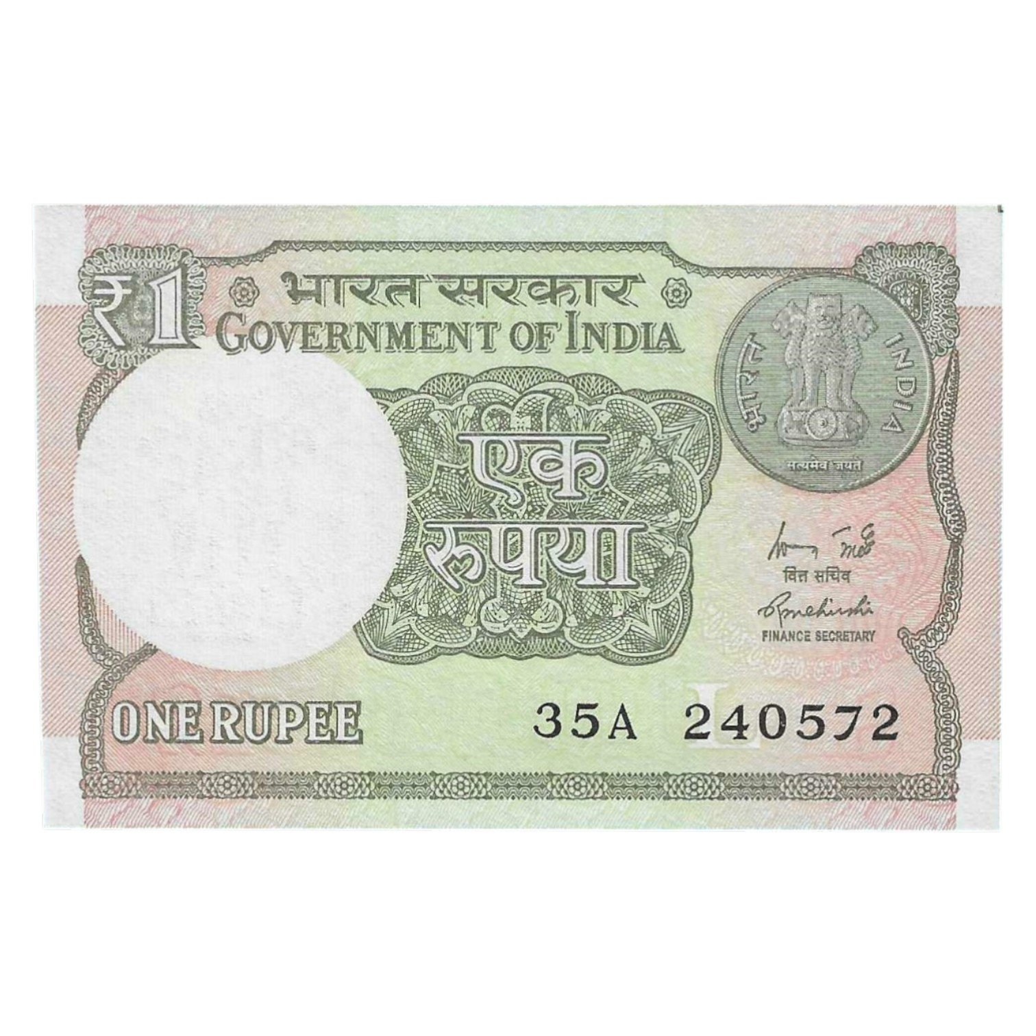 A-60 ~ 1 RUPEE NOTE ~ R MEHRISHI ~ 2015 ~ INSET “L” ~ PREFIX “A” ~ DATE : 24th MAY 72
