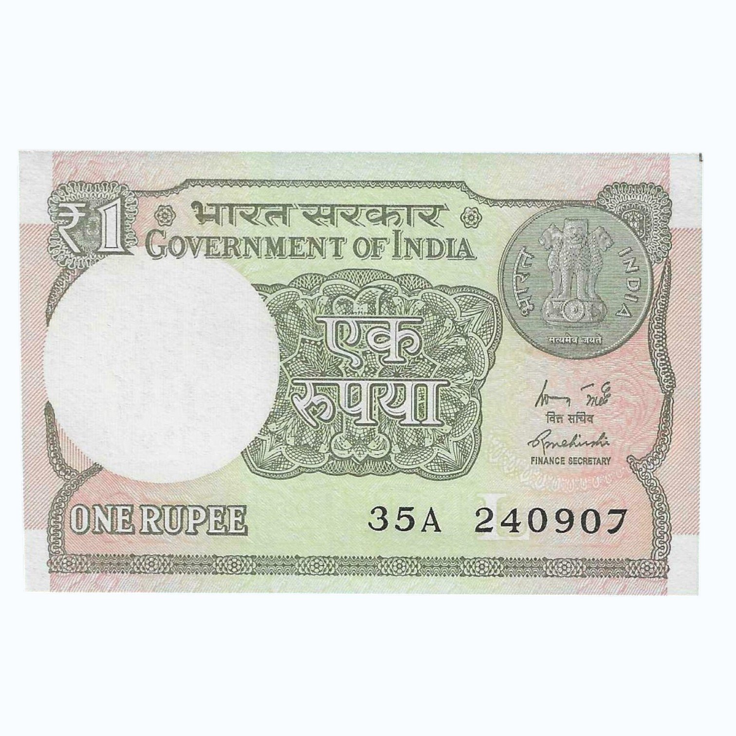 A-60 ~ 1 RUPEE NOTE ~ R MEHRISHI ~ 2015 ~ INSET “L” ~ PREFIX “A” ~ DATE : 24th SEPTEMBER 07