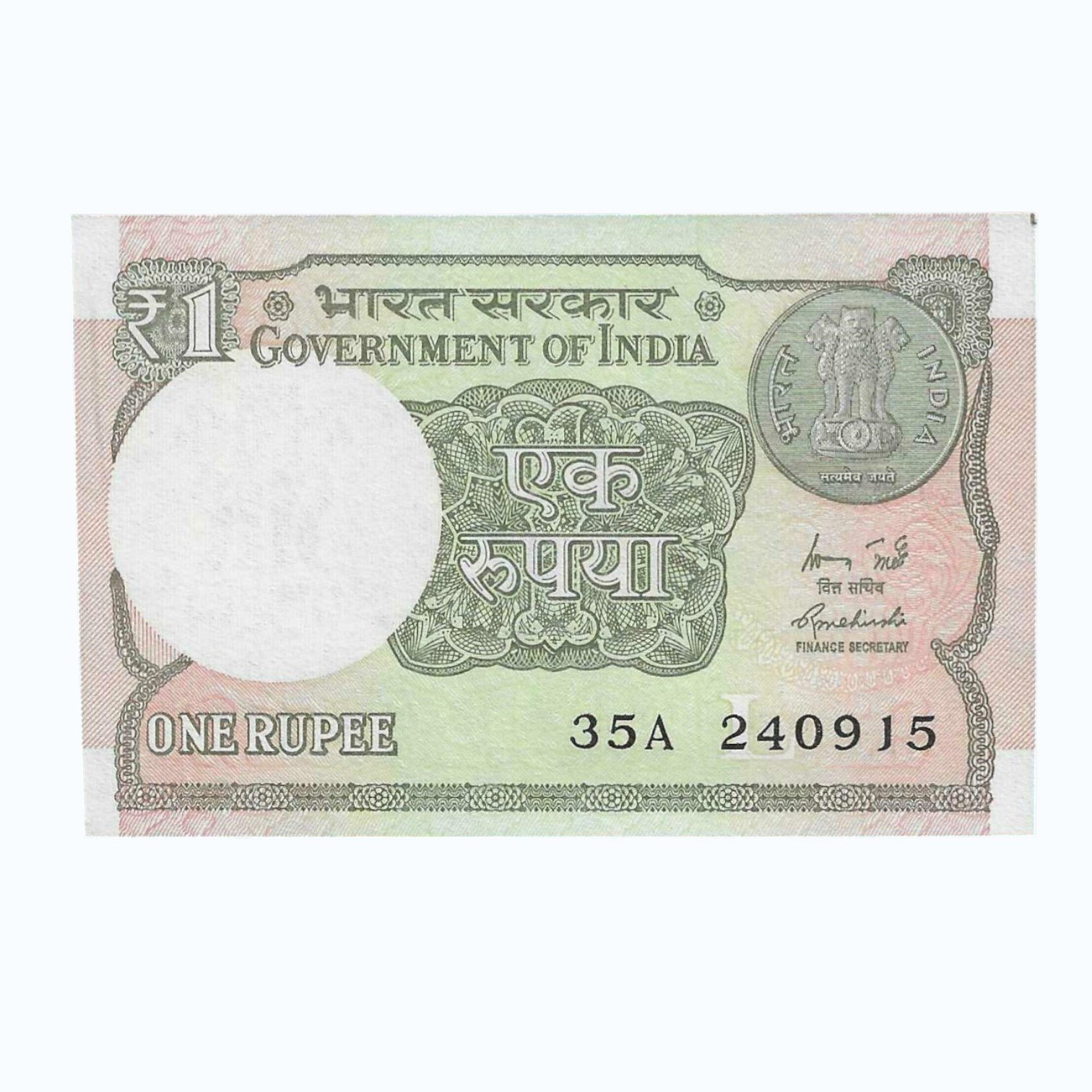 A-60 ~ 1 RUPEE NOTE ~ R MEHRISHI ~ 2015 ~ INSET “L” ~ PREFIX “A” ~ DATE : 24th SEPTEMBER 15
