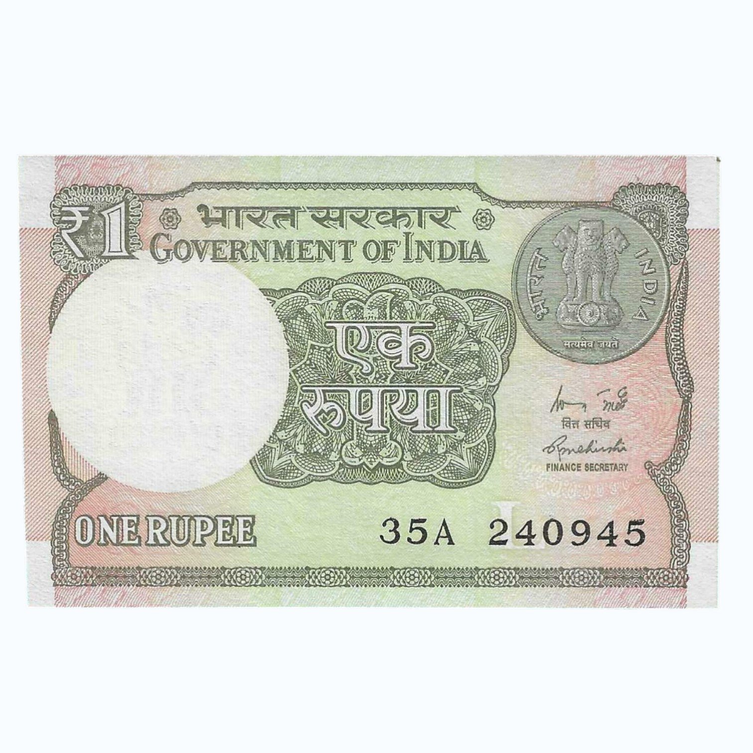 A-60 ~ 1 RUPEE NOTE ~ R MEHRISHI ~ 2015 ~ INSET “L” ~ PREFIX “A” ~ DATE : 24th SEPTEMBER 45