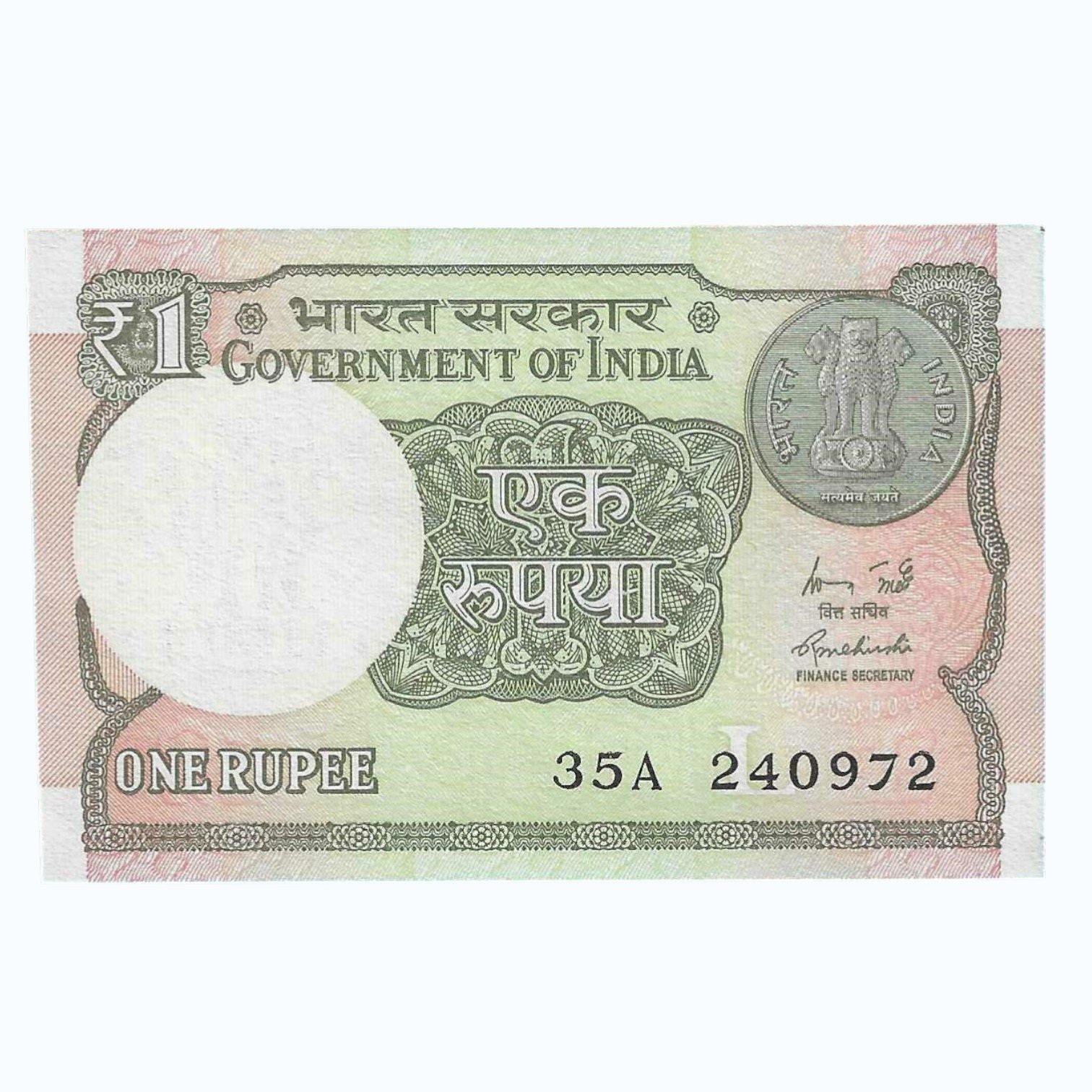 A-60 ~ 1 RUPEE NOTE ~ R MEHRISHI ~ 2015 ~ INSET “L” ~ PREFIX “A” ~ DATE : 24th SEPTEMBER 72