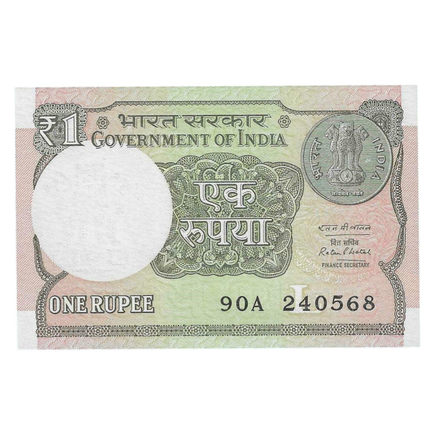 A-61 ~ 1 RUPEE NOTE ~ RATAN P WATAL ~ 2016 ~ INSET “L” ~ PREFIX “A” ~ DATE : 24th MAY 68