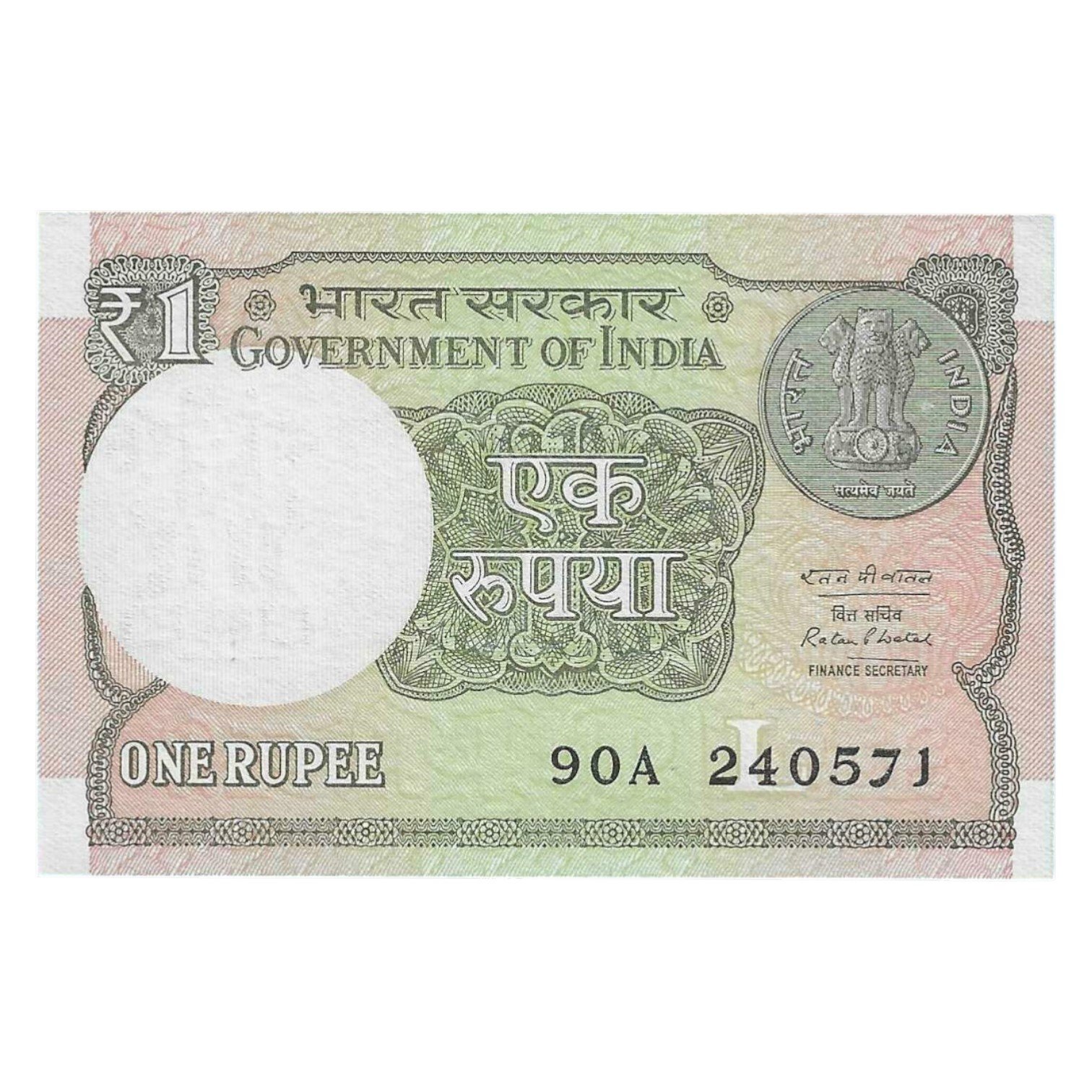 A-61 ~ 1 RUPEE NOTE ~ RATAN P WATAL ~ 2016 ~ INSET “L” ~ PREFIX “A” ~ DATE : 24th MAY 71