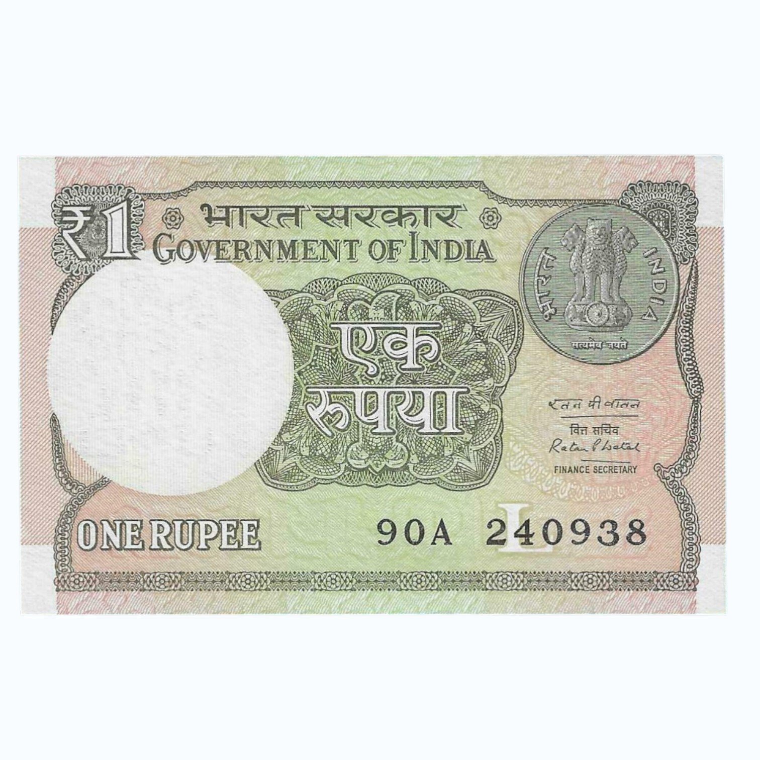 A-61 ~ 1 RUPEE NOTE ~ RATAN P WATAL ~ 2016 ~ INSET “L” ~ PREFIX “A” ~ DATE : 24th SEPTEMBER 38