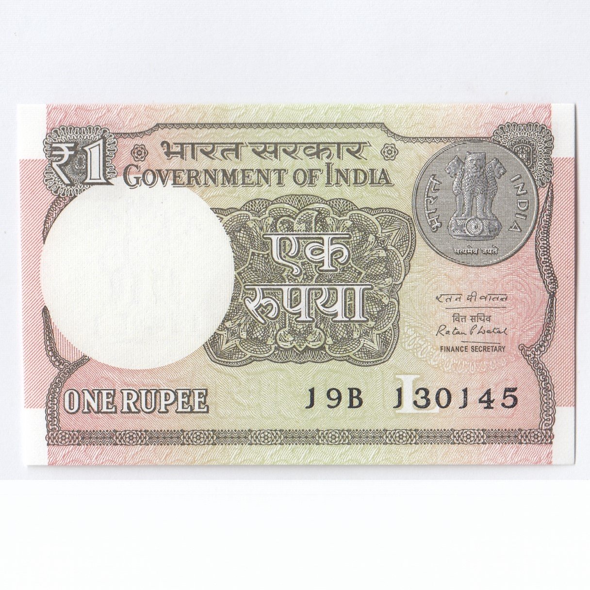 A-61 ~ 1 RUPEE NOTE ~ RATAN P WATAL ~ 2016 ~ Inset “L” ~ Prefix “B” ~ DATE : 13th JANUARY 45