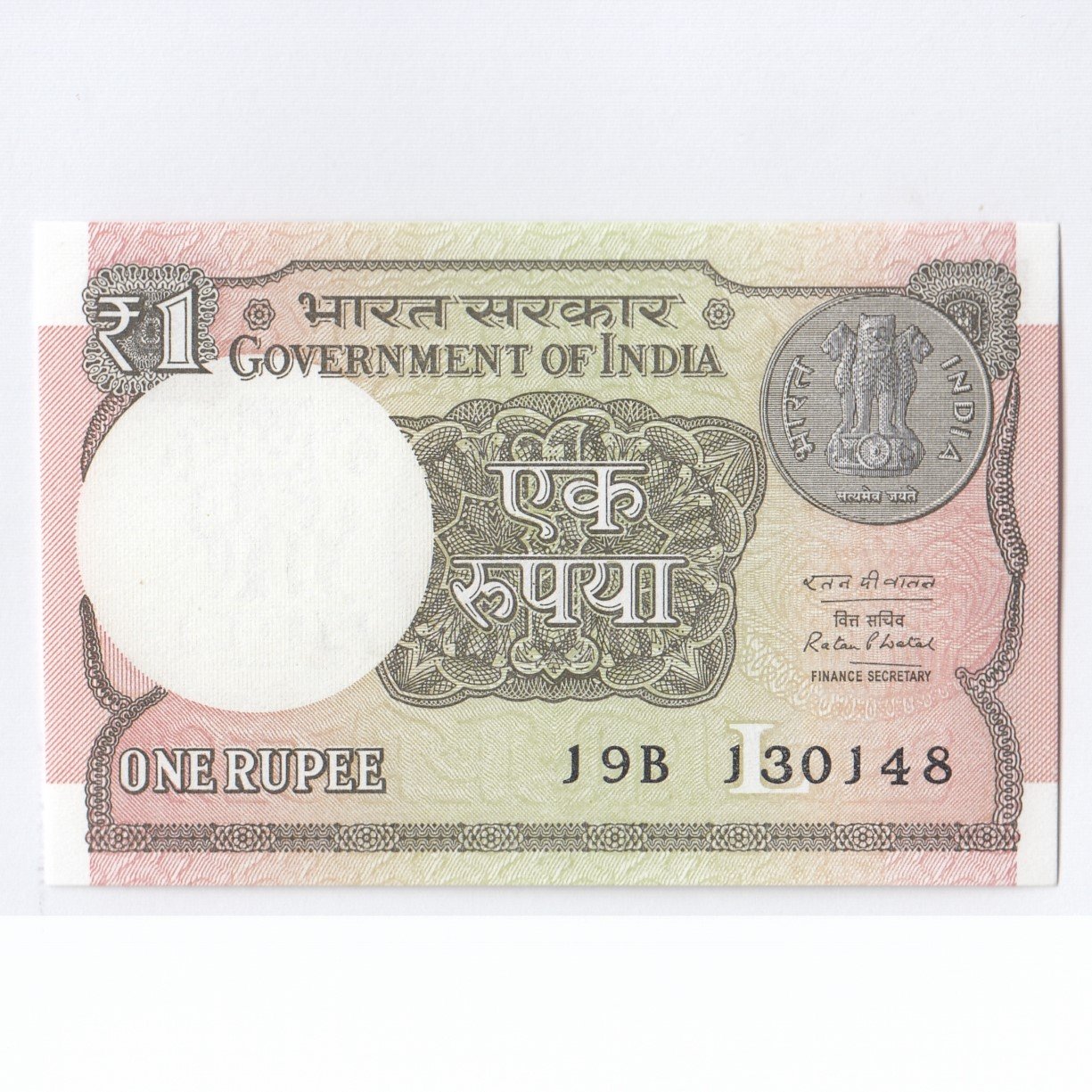 A-61 ~ 1 RUPEE NOTE ~ RATAN P WATAL ~ 2016 ~ Inset “L” ~ Prefix “B” ~ DATE : 13th JANUARY 48