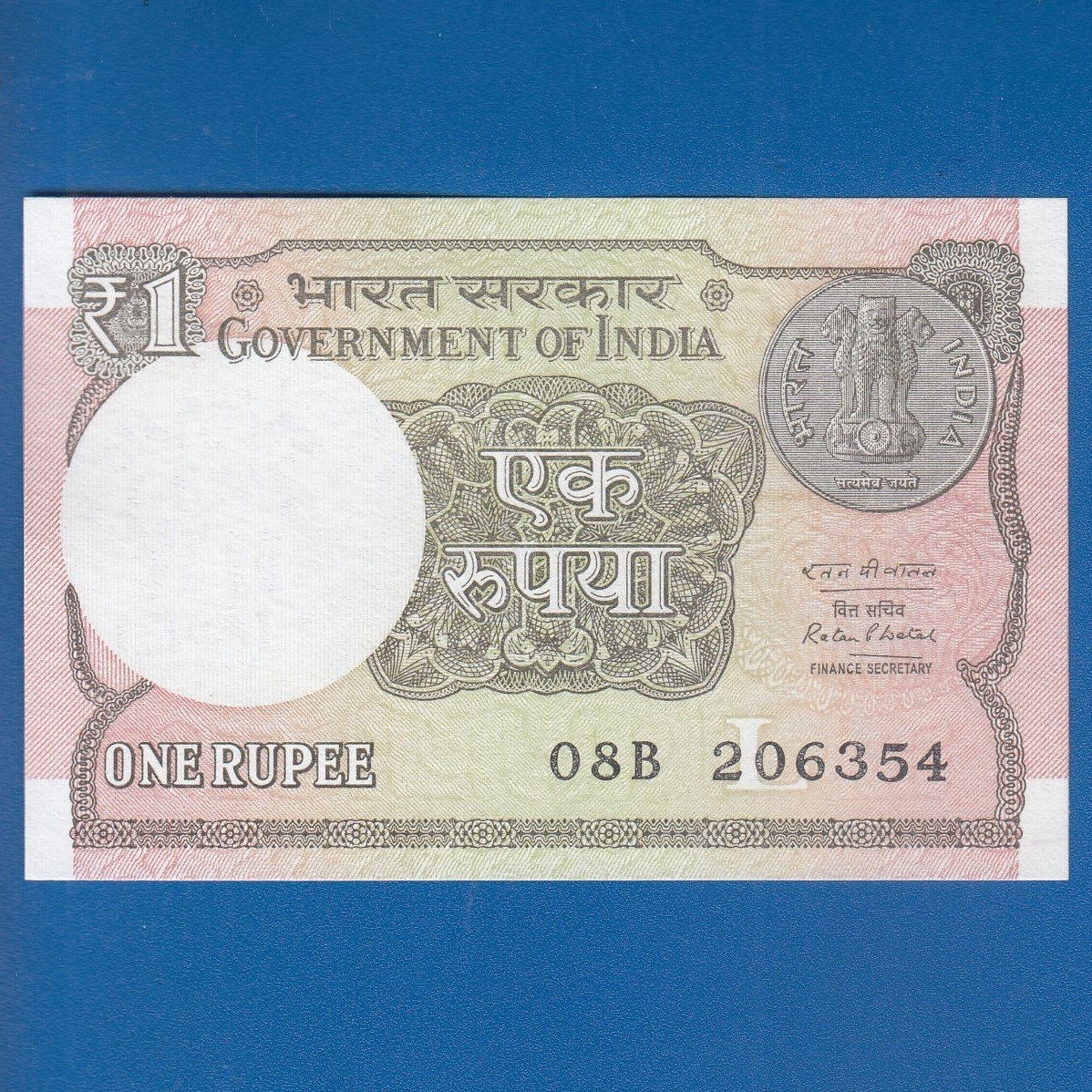 A-61 ~ 1 RUPEE NOTE ~ RATAN P WATAL ~ 2016 ~ INSET “L” ~ PREFIX “B”