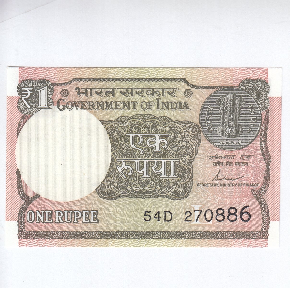 A-62 ~ 1 RUPEE NOTE ~ SHAKTIKANT DAS ~ 2017 ~ INSET “L” ~ PREFIX “D” ~ DATE : 27th AUGUST 86