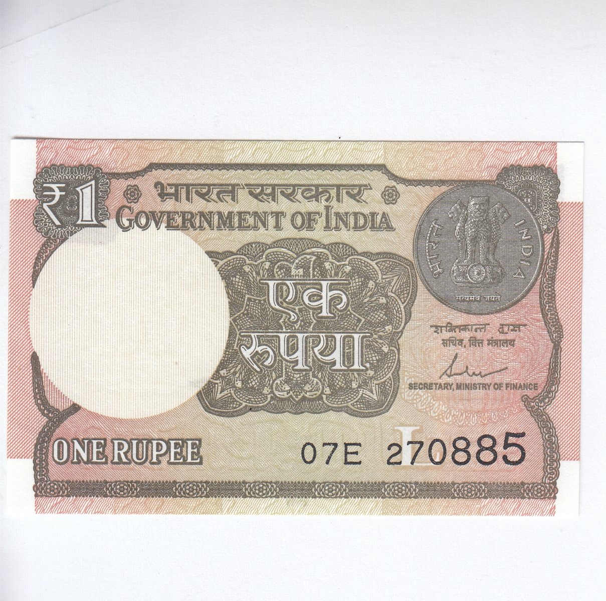 A-62 ~ 1 RUPEE NOTE ~ SHAKTIKANT DAS ~ 2017 ~ INSET “L” ~ PREFIX “E” ~ DATE : 27th AUGUST 85
