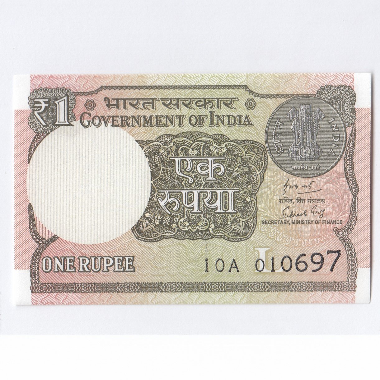 A-63 ~ 1 RUPEE NOTE ~ SUBHASH GARG ~ 2018 ~ Inset “L” ~ Prefix “A” ~ DATE : 1st JUNE 97