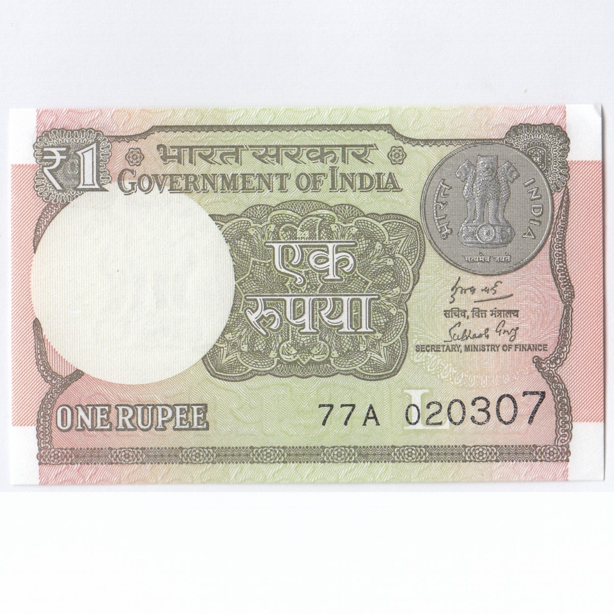 A-63 ~ 1 RUPEE NOTE ~ SUBHASH GARG ~ 2018 ~ Inset “L” ~ Prefix “A” ~ DATE : 2nd MARCH 07