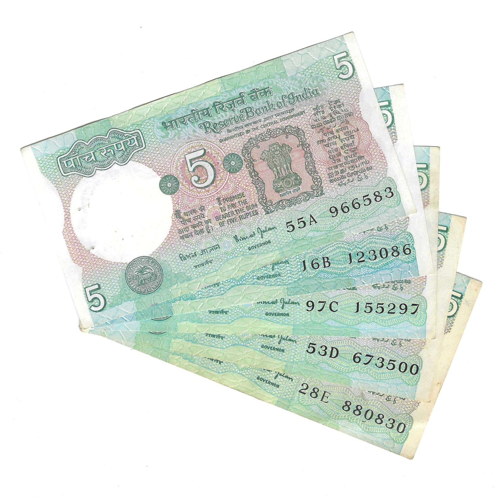C-33 ~ 5 RUPEE NOTES ~ BIMAL JALAN ~ TRACTOR ~ SMJ ~ 1997 ~ Inset “PLAIN” ~ SET OF ALL 5 ISSUED PREFIXES ~ RARE