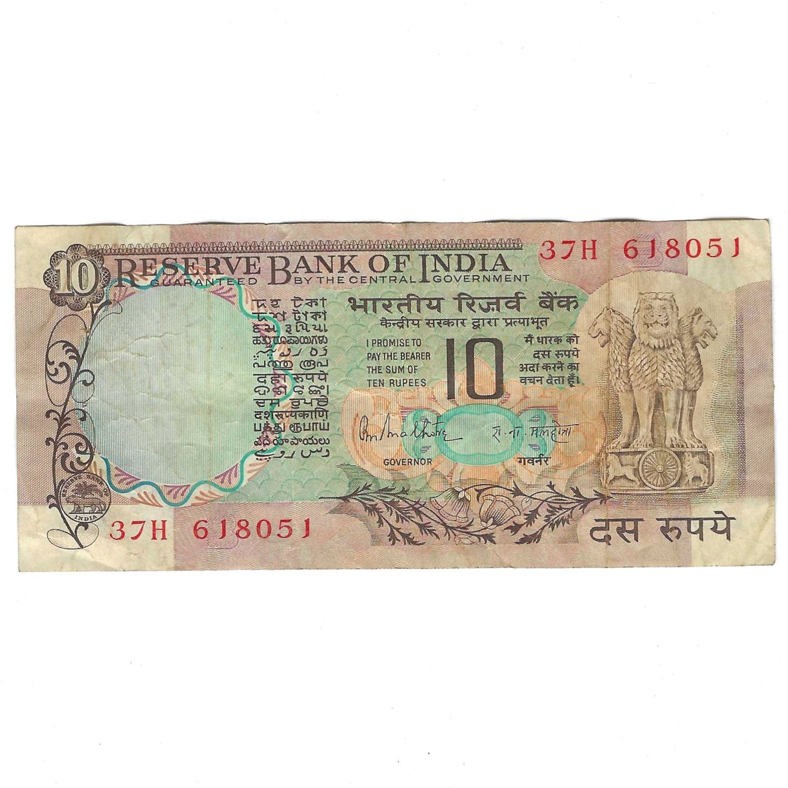 D-037 ~ 10 RUPEES NOTE ~ R N MALHOTRA ~ PEACOCK SERIES ~ 1985 ~ INSET “B” ~ PREFIX “H”