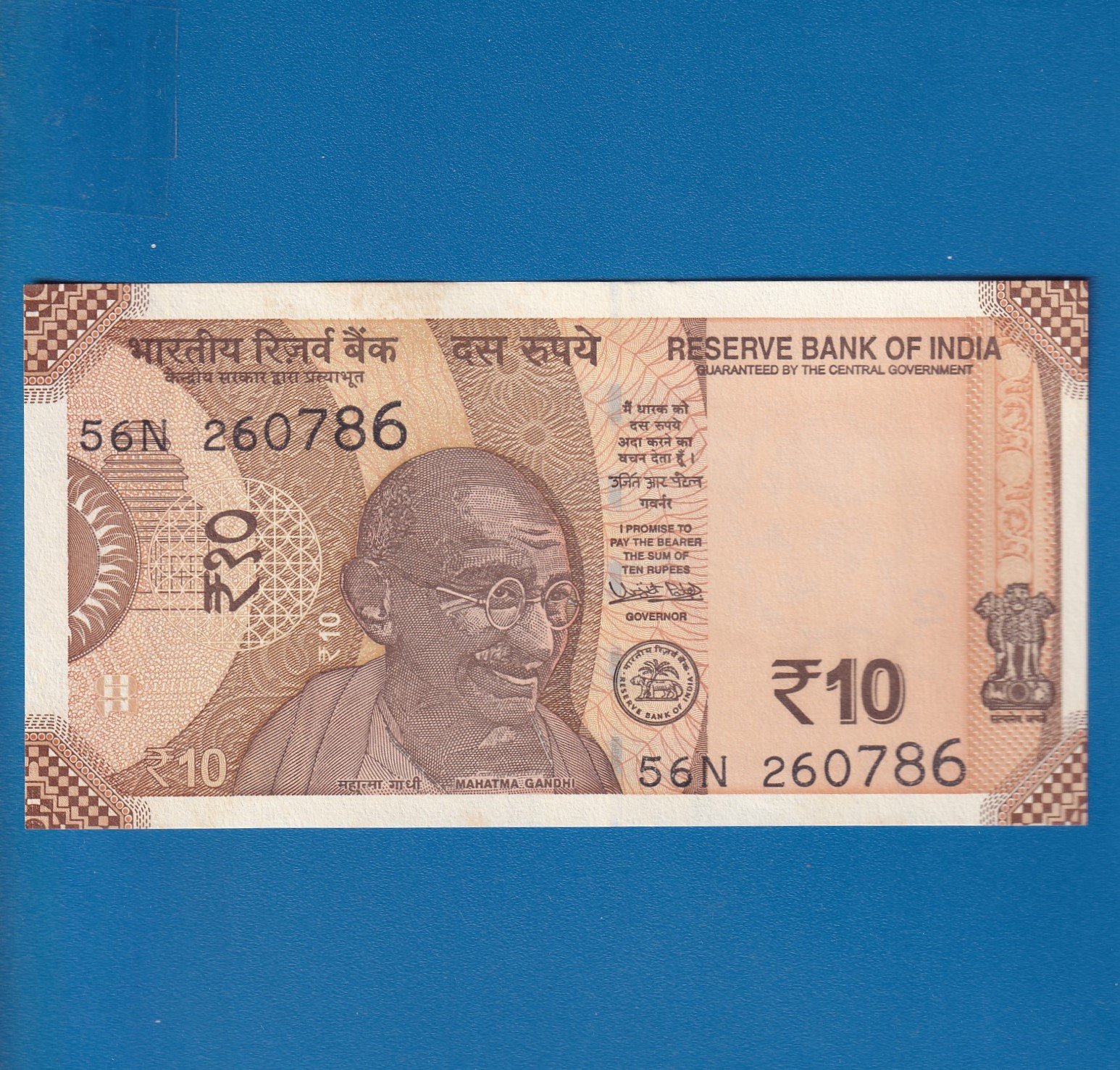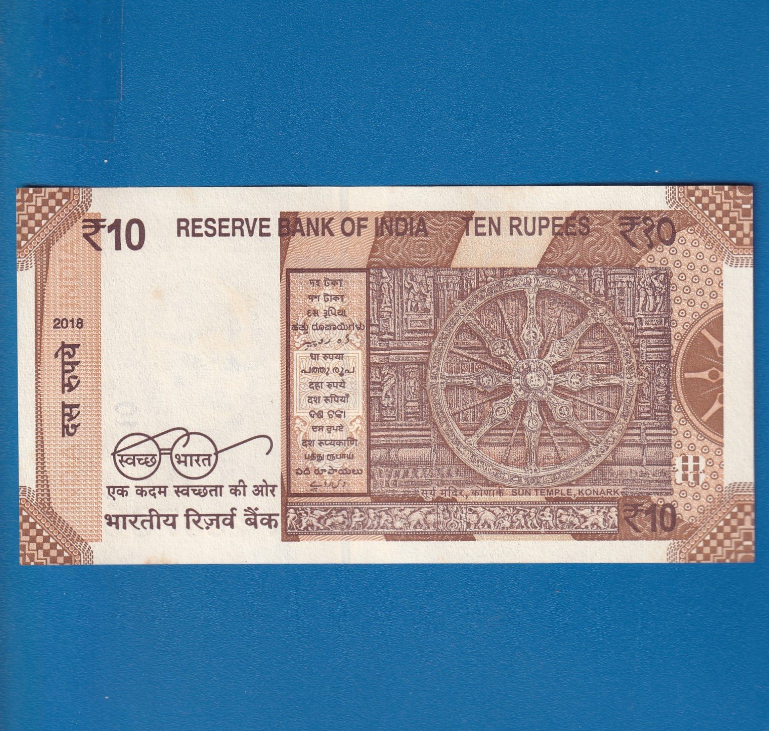 D-133 ~ 10 RUPEES NOTE ~ URJIT R PATEL ~ SUN TEMPLE ~ 2018 ~ INSET “PLAIN” ~ PREFIX “N” ~ DATE – 26th JULY 86