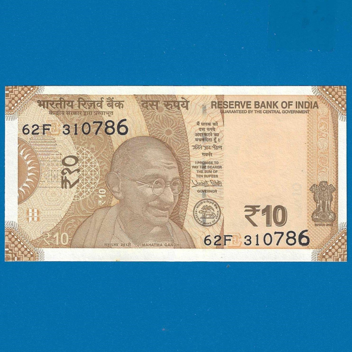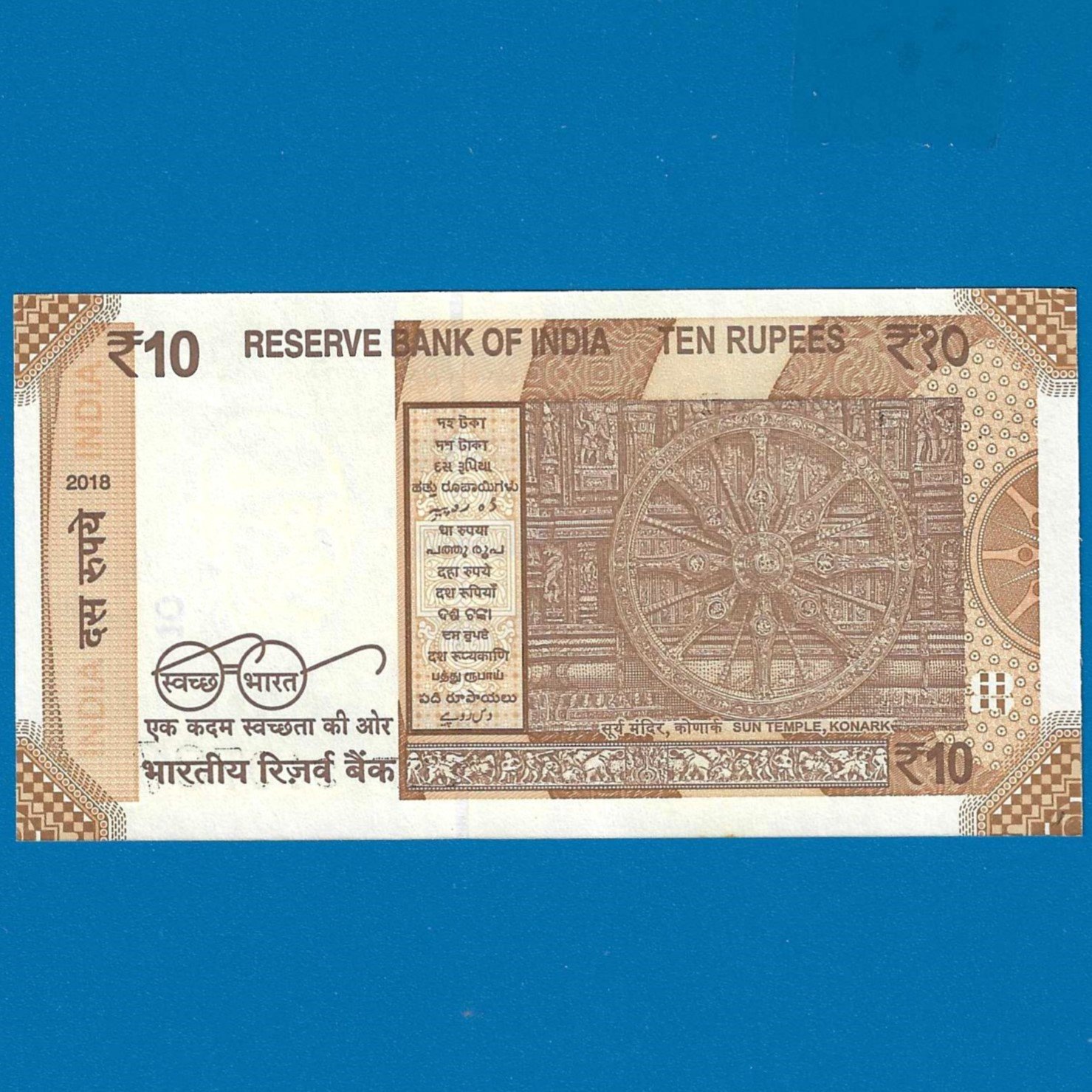 D-135 ~ 10 RUPEES NOTE ~ URJIT R PATEL ~ SUN TEMPLE ~ 2018 ~ INSET “E” ~ PREFIX “F” ~ DATE – 31st JULY 86