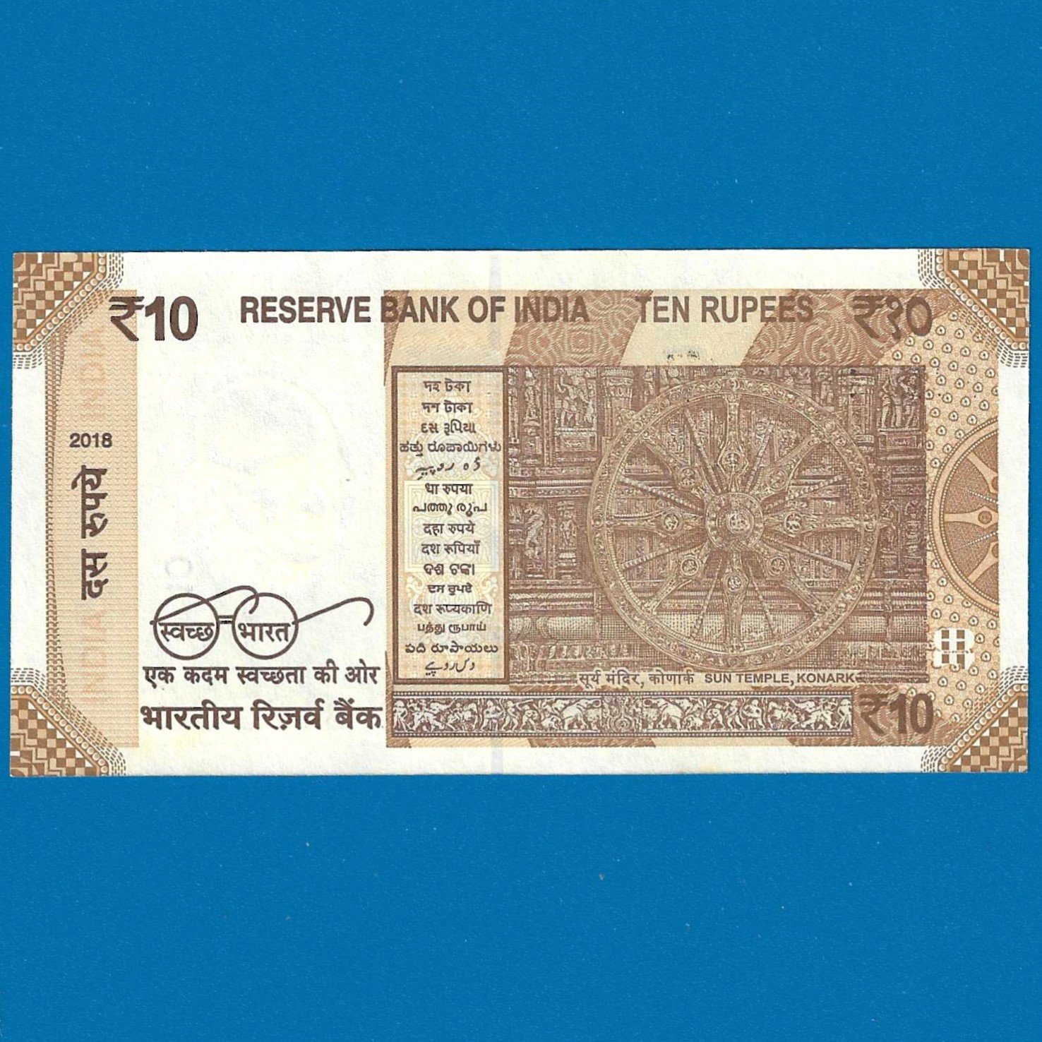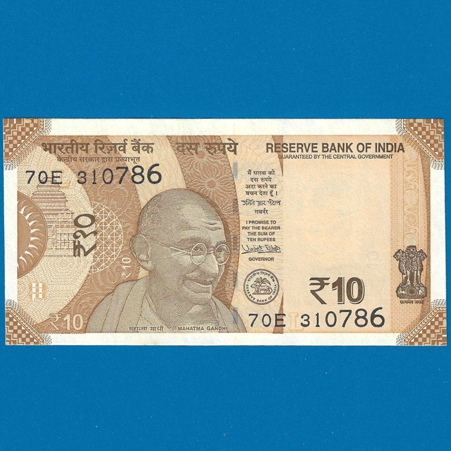 D-136 ~ 10 RUPEES NOTE ~ URJIT R PATEL ~ SUN TEMPLE ~ 2018 ~ INSET “L” ~ PREFIX “E” ~ DATE – 31st JULY 86
