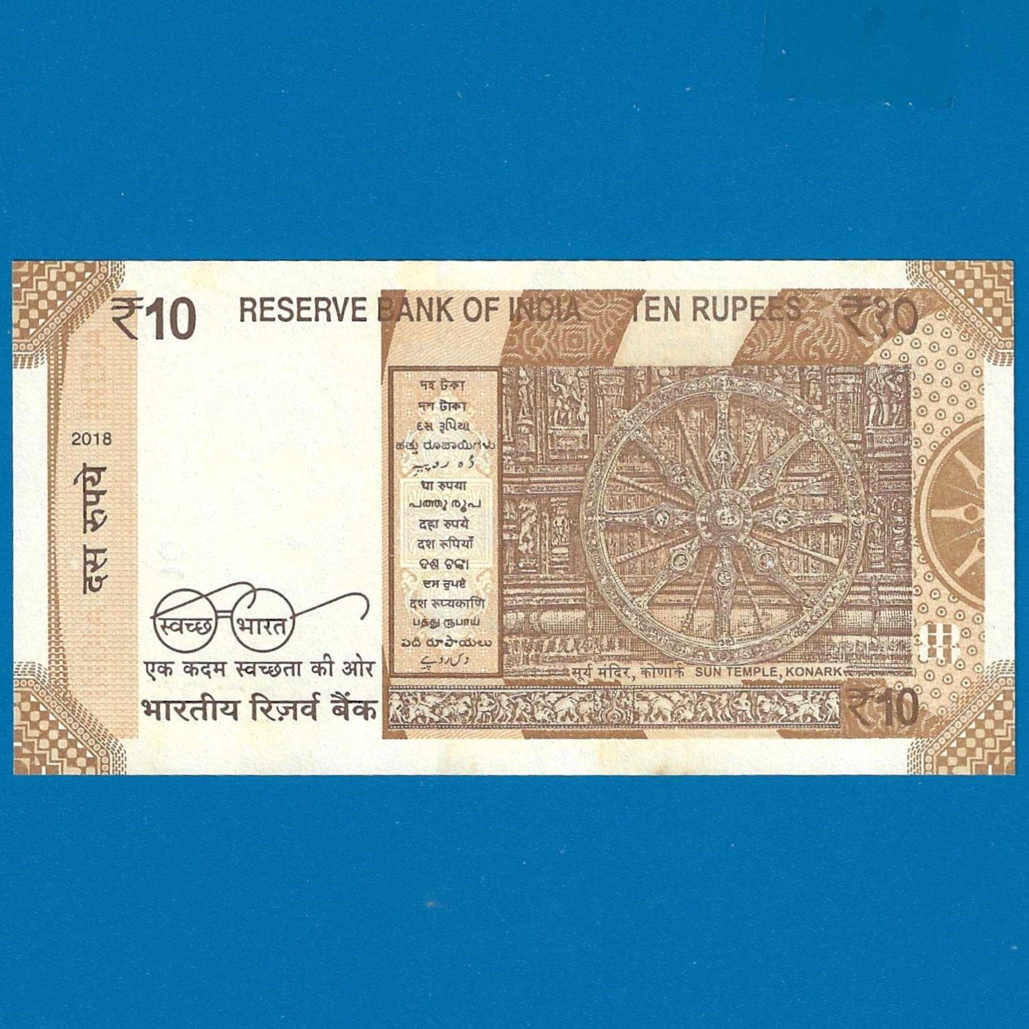 D-138 ~ 10 RUPEES NOTE ~ URJIT R PATEL ~ SUN TEMPLE ~ 2018 ~ INSET “S” ~ PREFIX “F” ~ DATE – 31st JULY 86