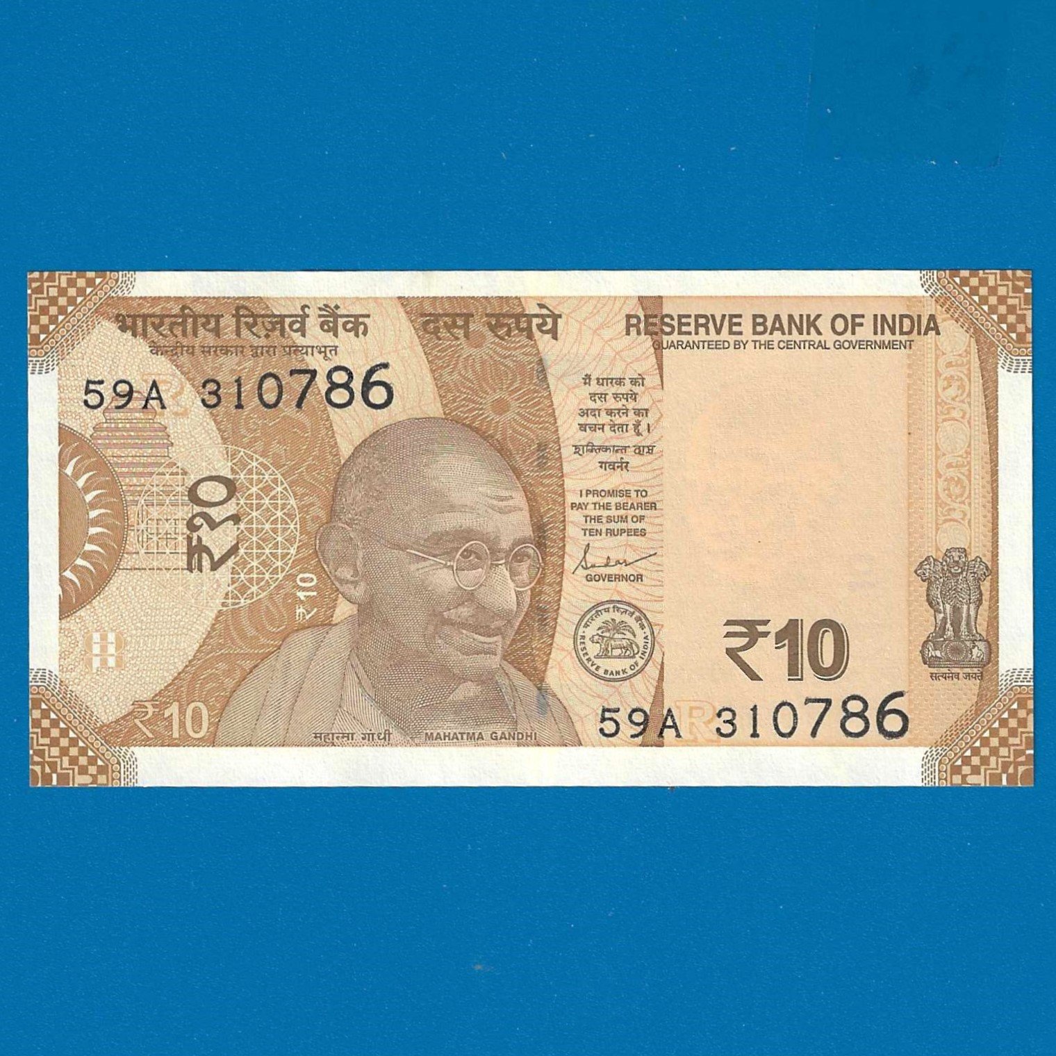D-140 ~ 10 RUPEES NOTE ~ SHAKTIKANT DAS ~ SUN TEMPLE ~ 2019 ~ INSET “R” ~ PREFIX “A” ~ DATE – 31st JULY 86