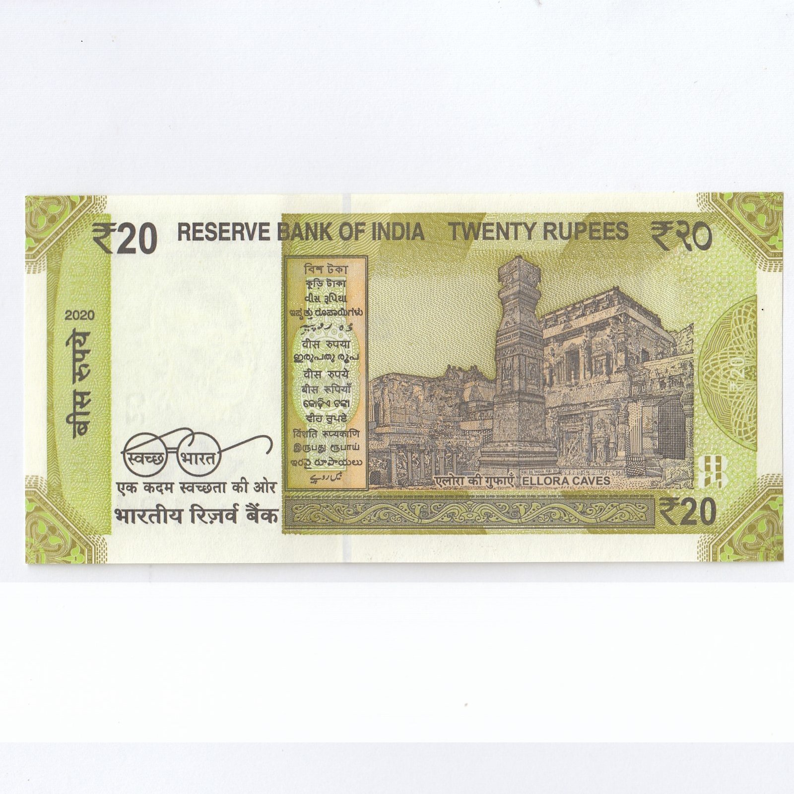 E-074 ~ 20 RUPEES NOTE ~ SHAKTIKANT DAS ~ ELLORA CAVES ~ 2020 ~ INSET “R” ~ PREFIX “R” DATE – 11th NOVEMBER 34