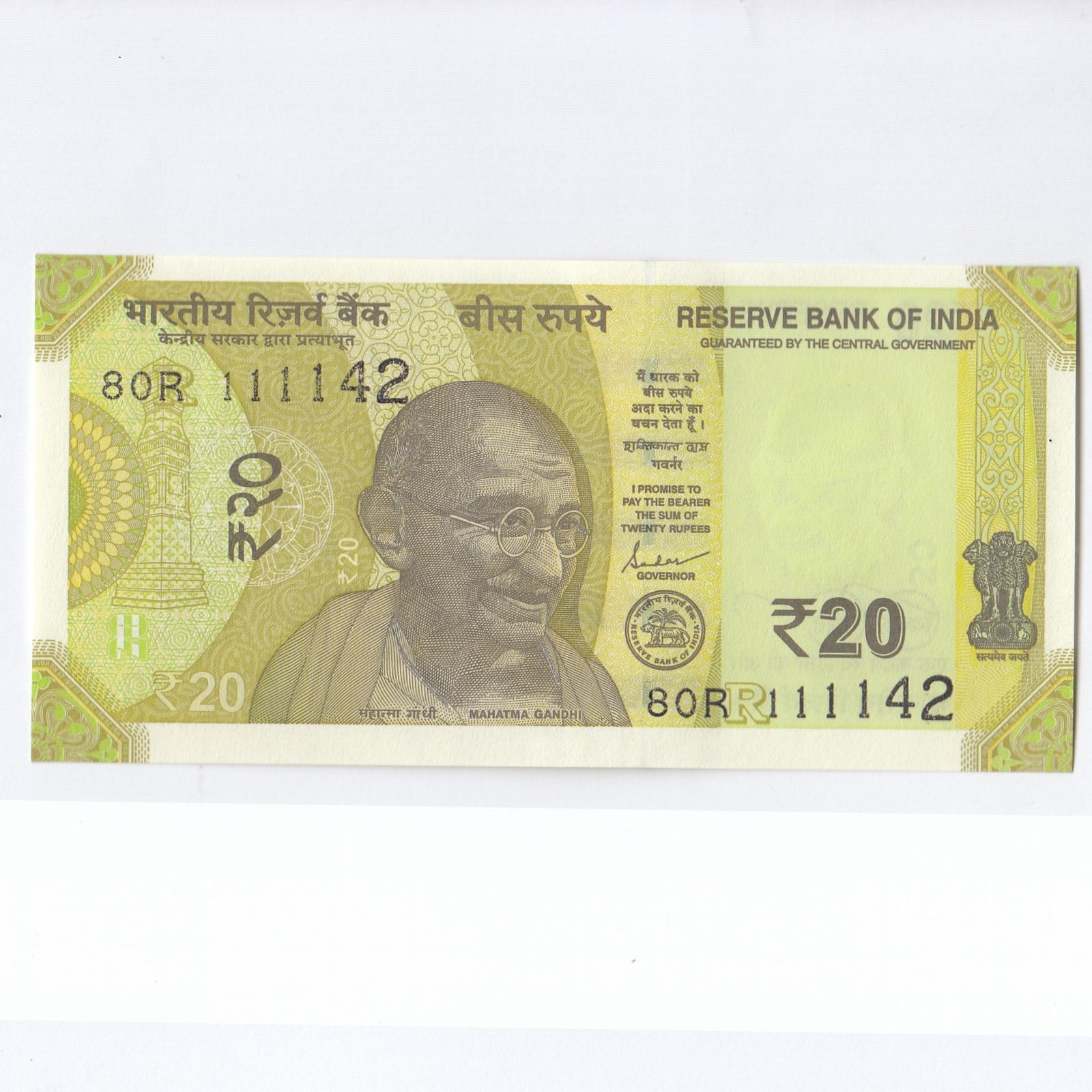 E-074 ~ 20 RUPEES NOTE ~ SHAKTIKANT DAS ~ ELLORA CAVES ~ 2020 ~ INSET “R” ~ PREFIX “R” DATE – 11th NOVEMBER 42