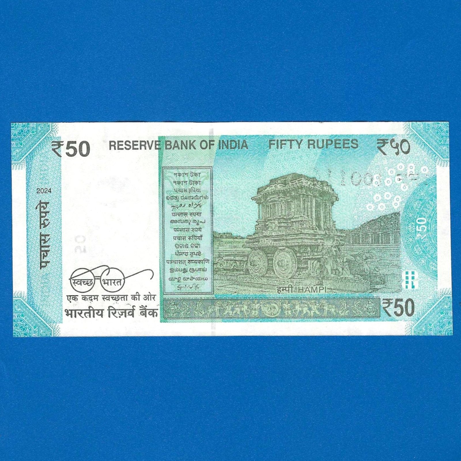 F-101 ~ 50 RUPEES NOTE ~ SHAKTI KANT DAS ~ HAMPI TEMPLE SERIES ~ 2024 ~ INSET “M” ~ DATE – 10th JANUARY 10