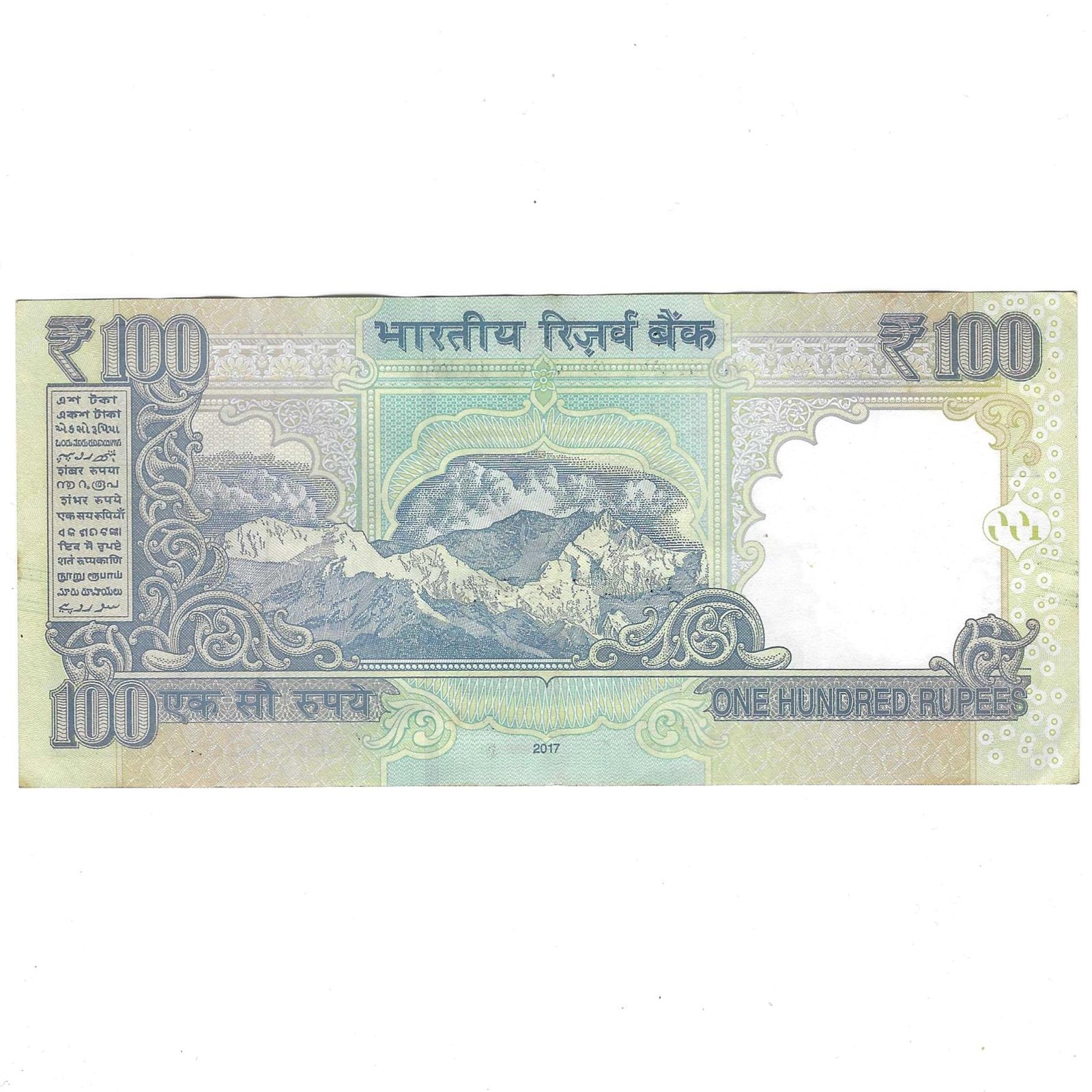 G-115 ~ 100 RUPEES NOTE ~ URJIT R PATEL ~ HIMALAYA SERIES ~ 2017 ~ INSET “R” ~ PREFIX “BU” ~ DATE – 1st JULY 1974