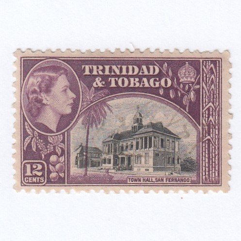 POSTAGE STAMP – TRINIDAD AND TOBAGO – 1953 – TOWN HALL SAN FERNADO QUEEN ELIZABETH II