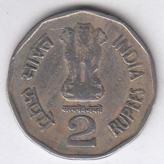 OBVERSE  : “सत्यमेव जयते”  & “रूपये 2 RUPEES” BELOW LION CAPITAL OF ASHOKA PILLAR, भारत INDIA