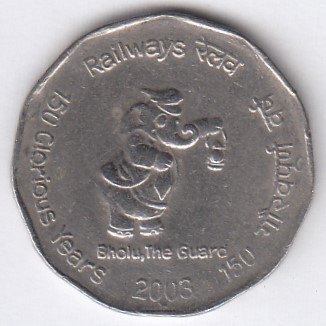 RIC074 ~ 2 RUPEES ~ 2003 ~ RAILWAYS’ 150 GLORIOUS YEARS ~ COMMEMORATIVE COIN ~ HYDERABAD MINT