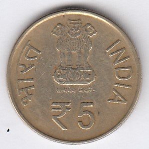 OBVERSE : “सत्यमेव जयते” & “रूपये 5 RUPEES” BELOW LION CAPITAL OF ASHOKA PILLAR, भारत INDIA