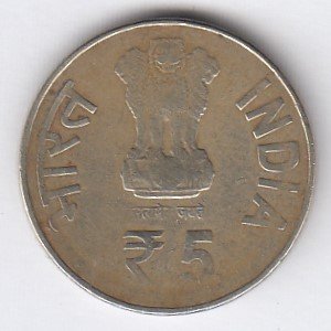 OBVERSE : “सत्यमेव जयते” BELOW LION CAPITAL OF ASHOKA PILLAR, “भारत INDIA” & “रूपये 5 RUPEES“